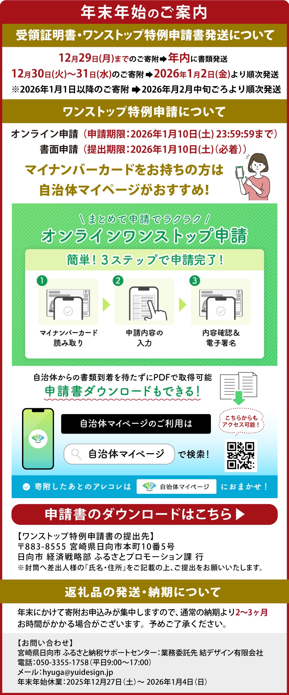 住民票が日向市にある方は、返礼品の送付の対象になりません。