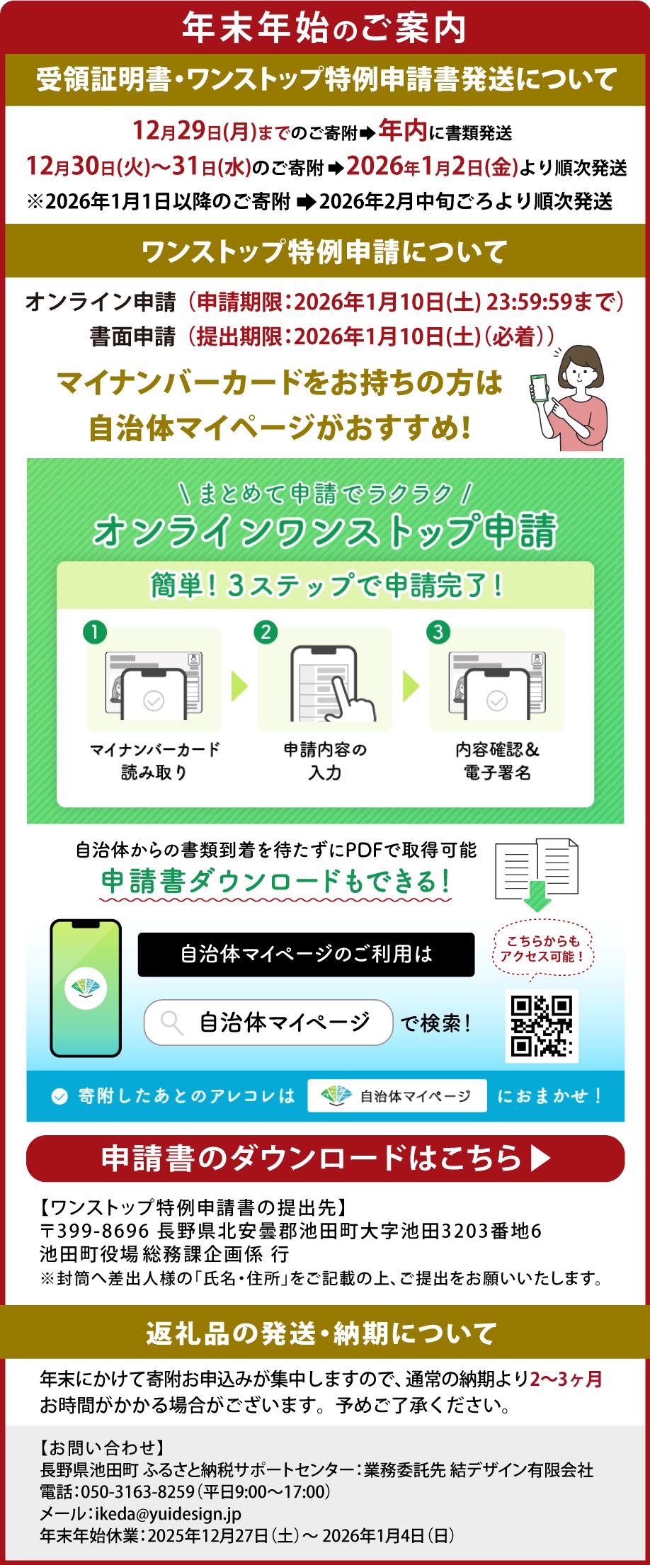 長野県池田町の返礼品をまとめた一覧ページです。数ある返礼品の中から、お探しの返礼品を簡単に検索できます。