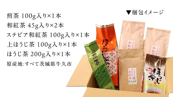 牛久市産お茶の詰め合せ 煎茶 紅茶 ほうじ茶 水出し 飲み比べ セット ステビア 和紅茶 カフェイン ラテ ハーブ 糖質オフ [AX016us]
