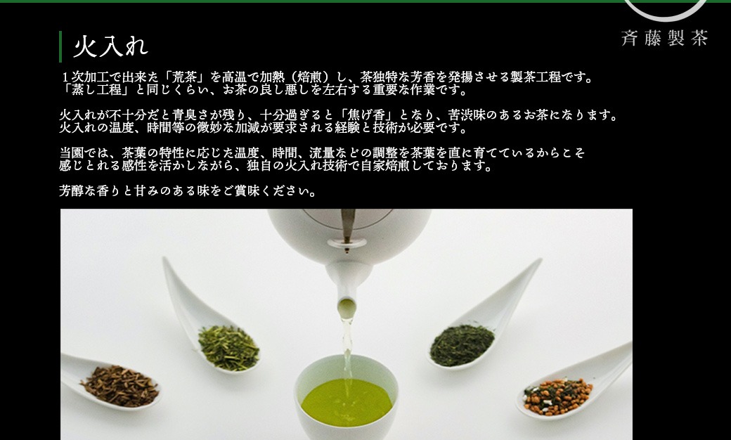 こうして育てた新芽を深蒸し茶製法で丹念に製造し、独自の火入れ技術で自家焙煎すると、濃緑な水色と深い味わいの当店オリジナルブランド「さしま香り」が出来上がります。