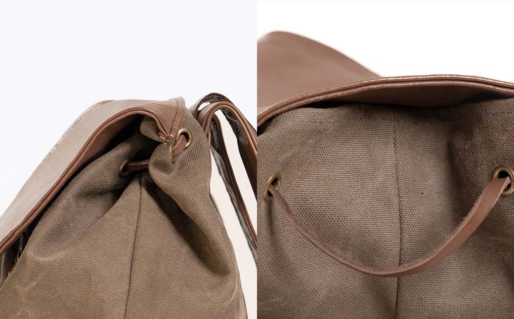 軽くしなやかで通気性にすぐれた鹿革と耐久性があり丈夫な帆布を合わせたリュックサック
