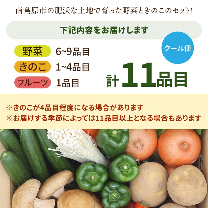 新鮮 野菜 キノコ 果物 11品目 詰め合わせ / 野菜 やさい きのこ キノコ 詰め合わせ セット 野菜セット きのこセット / 吉岡青果 / 南島原市 [SCZ004]