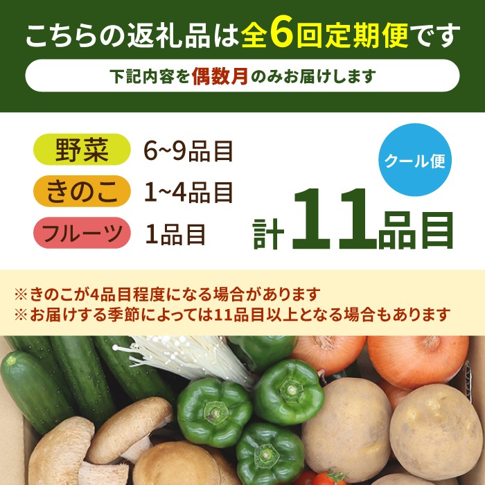 【6回定期便 偶数月コース】野菜 キノコ 果物 11品目 詰め合わせ 当日仕入れ当日発送! / 南島原市 / 吉岡青果 [SCZ006]