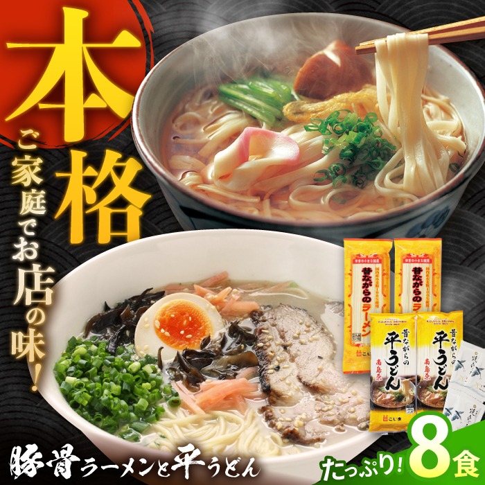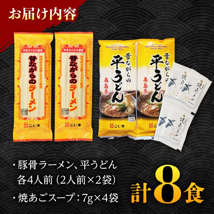 昔ながらの ラーメン & 焼あご スープ付 の 平うどん(各4食) / 南島原市 / こじま製麺 |