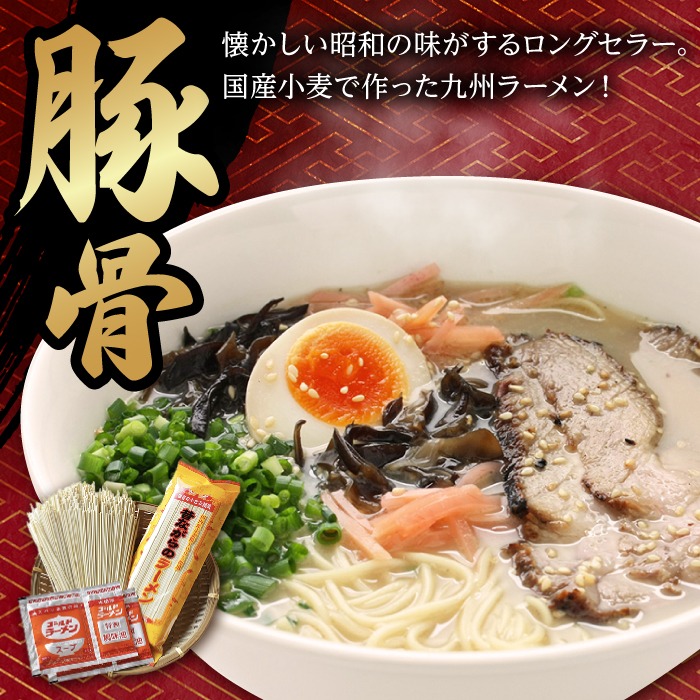 国産小麦100%使用、昔ながらの懐かしいマイルドスープの豚骨ラーメン。 塩から手作りで作られた五島『虎屋』さんの無添加焼あごスープ付で、あっさりとした中にも飛魚がしっかり薫る上質なスープと絶妙な相性の平たいうどん。 発売から約50年、地元の皆様から愛され続けるロングセラー商品を、ぜひご賞味ください!