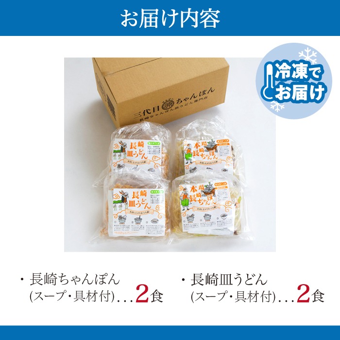 冷凍 長崎ちゃんぽん 皿うどん セット 4食 (チャンポン1食×2、皿ウドン1食×2) / 具入り 冷凍ちゃんぽん 冷凍皿うどん / 南島原市 / 狩野食品 [SDE006]