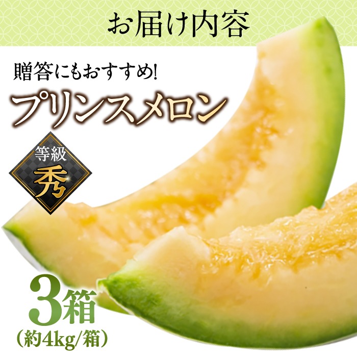 【2026年4月下旬~発送】【根強い人気!】 プリンスメロン 3箱 セット (1箱 7~13玉)/ メロン 南島原市 / 南島原果物屋 [SCV007]
