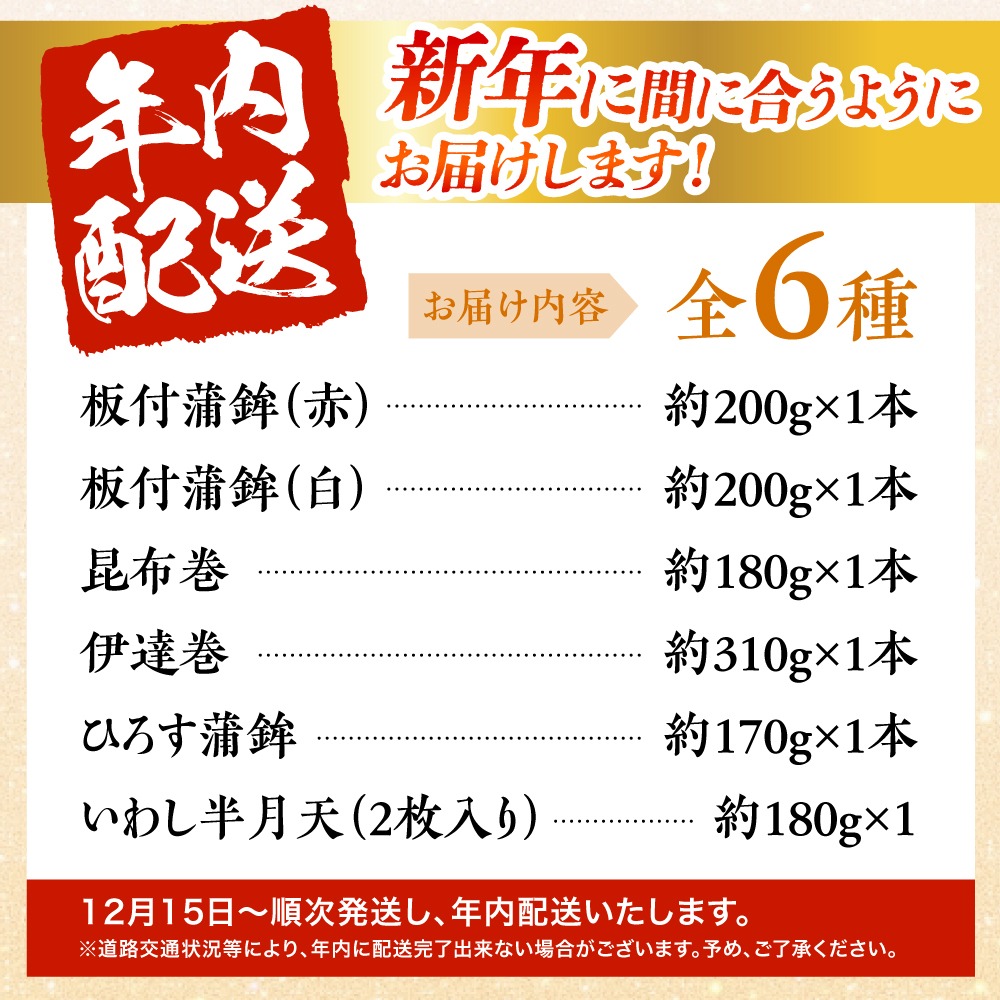 【2025年12月〜発送】【創業明治14年の老舗】蒲鉾 御歳暮・お正月用 計6種 詰合わせ / かまぼこ 蒲鉾 練り物 贈答用 お歳暮 年末 正月 おせち 年内配送 / 南島原市 / 内田蒲鉾店 [SAH007]