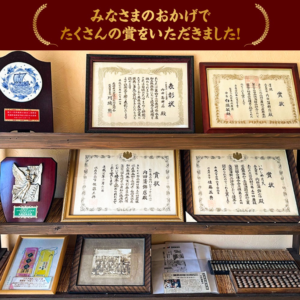 | 賞味期限 | 昆布巻・伊達巻・ひろす蒲鉾・いわし半月天(真空パックしてあるもの):1ヶ月 板付蒲鉾(赤・白):3週間 |