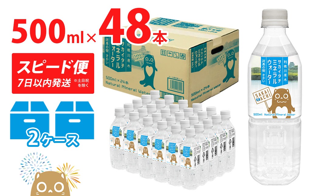 <スピード便> 利根川原水 サカイタチ ミネラルウォーター 水 2ケース 500ml (24本×2ケース) 48本 水 K2252