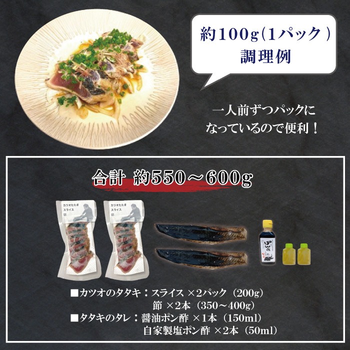 魚市場 の目利きが 厳選 本場 高知 の カツオのタタキ (タレ付き 血合い抜き)スライス済み & 節 合計約550~600g 冷凍 海鮮 魚 魚介 かつお カツオ 鰹 たたき タタキ 新鮮 ごちそう 高知県 四万十市 四万十 しまんと 25-612