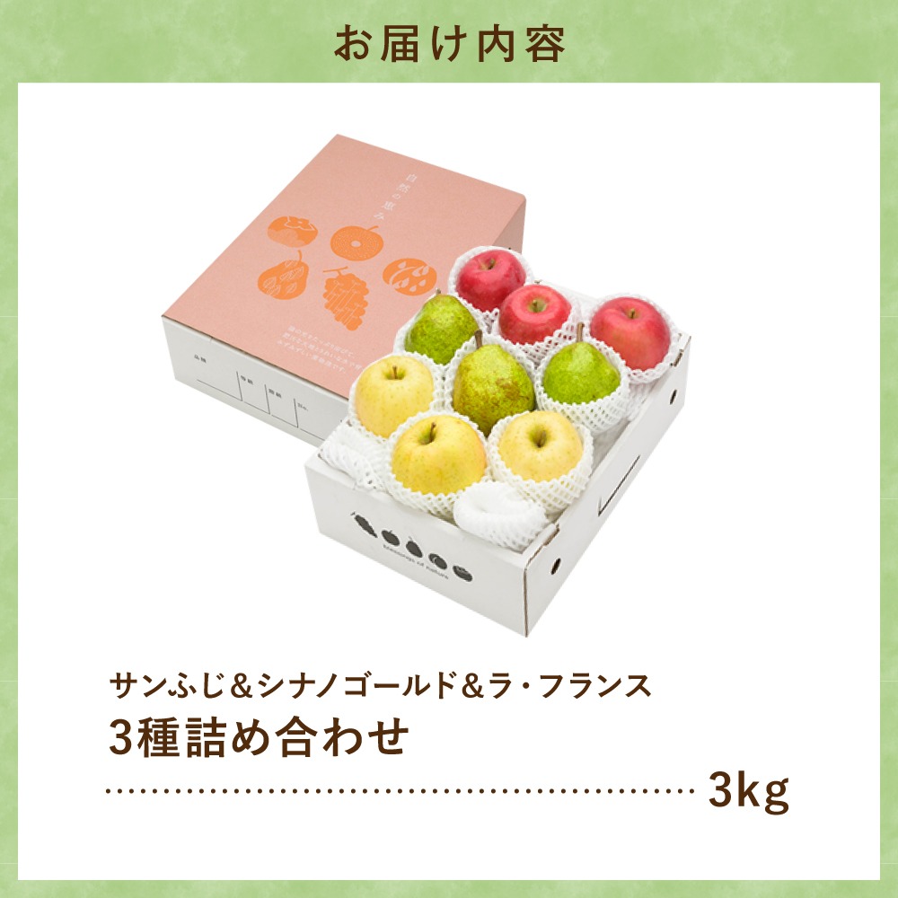 詳細 内容量 サンふじ&シナノゴールド&ラフランス 詰め合わせ 3kg(8玉~12玉入り)