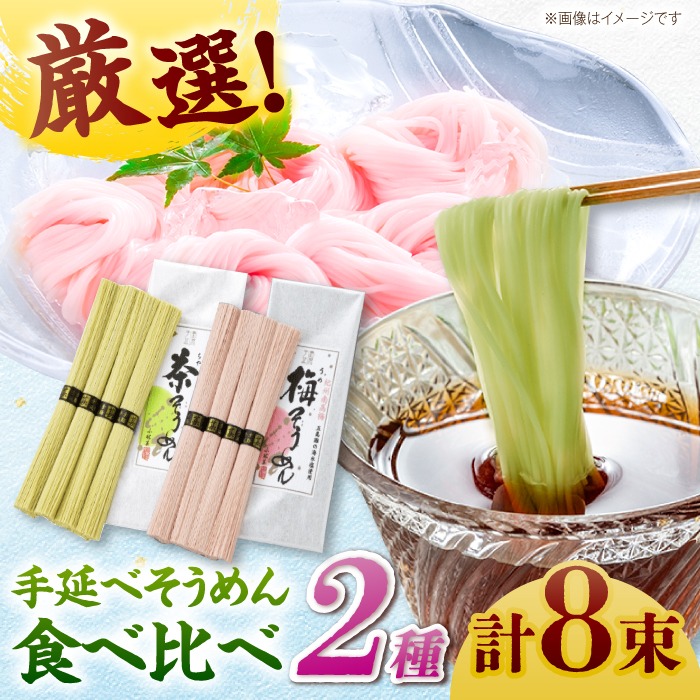 【極旨めん】紀州梅・八女茶そうめんセット(50g×各4束) / 素麺 島原ソーメン / 南島原市 / 小林甚製麺[SBG024]