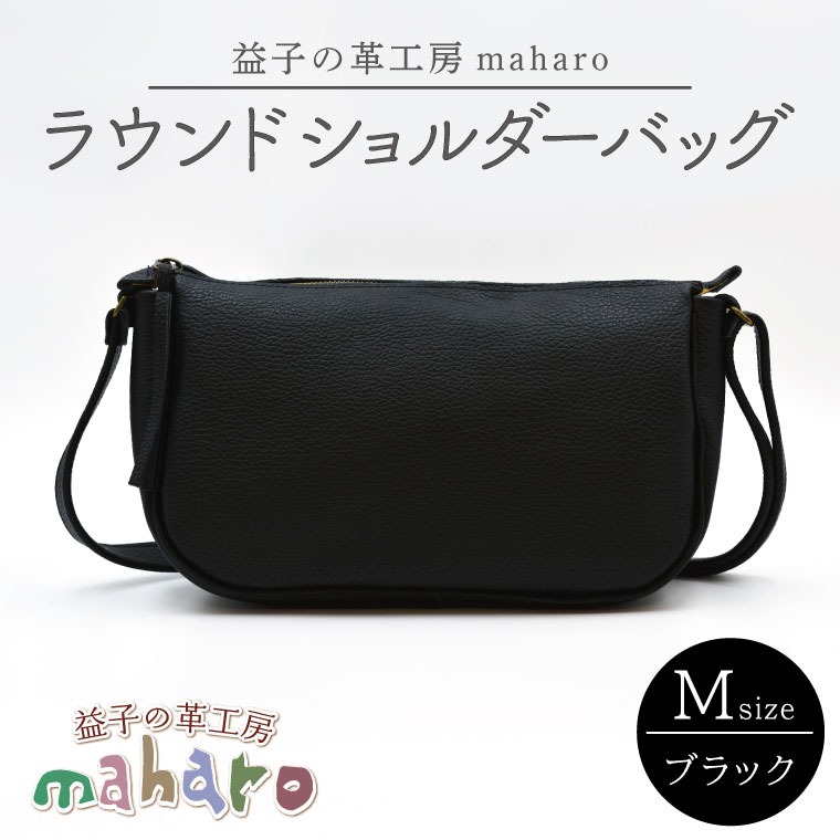 益子の革工房maharoのラウンドショルダーバッグ(M)ブラック|栃木県 益子町 ふるさと納税 ショルダーバッグ バッグ 牛革 手作り (AX116-3)