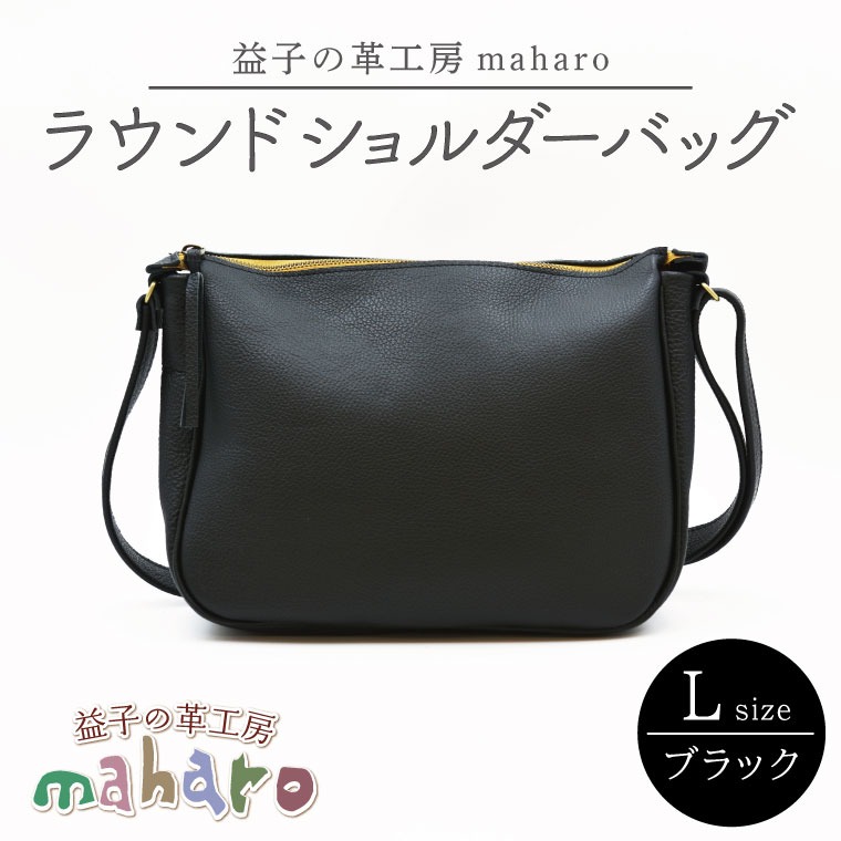 益子の革工房maharoのラウンドショルダーバッグ(L)ブラック|栃木県 益子町 ふるさと納税 ショルダーバッグ バッグ 牛革 手作り (AX117-3)