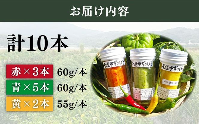 糸島産手造り極上柚子こしょう3色(青・黄・赤) 10本セット 《小林農園》福岡《糸島》[AZE003] 福岡 てづくり 調味料 九州 柚子 胡椒 あらびき ゆず