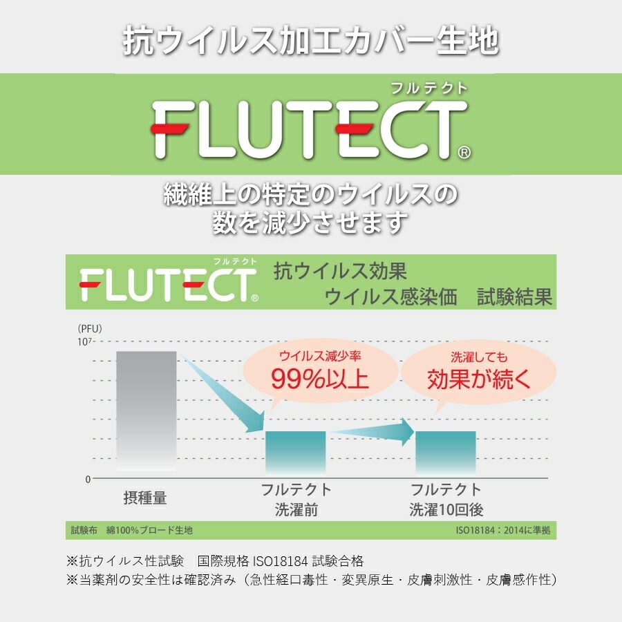 「フルテクト」とは抗ウイルス加工のことで、繊維上に付着したウイルスの99%の感染価を減少させ、洗濯10回後にも効果が持続します。