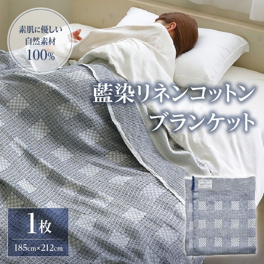 藍染リネンコットンブランケット 1枚 素材:リネン50%・コットン50% |