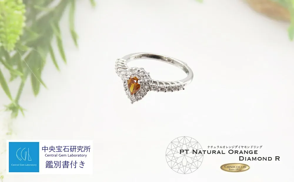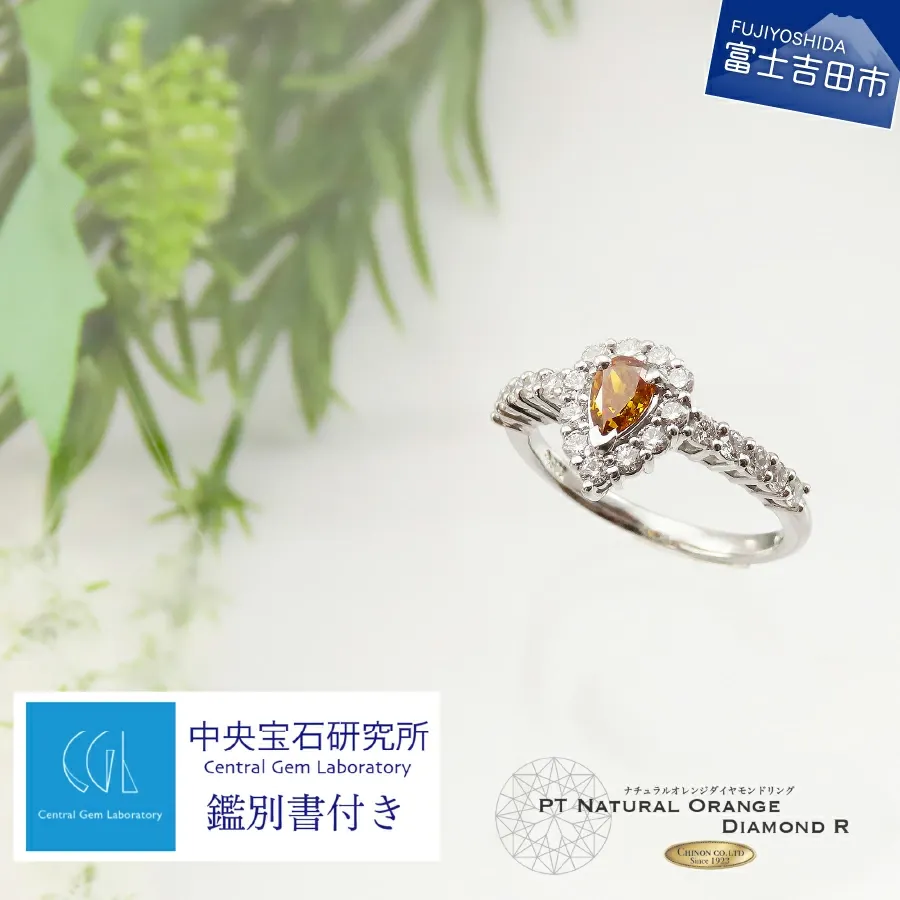 【KT-1125】ノンヒート 天然オレンジダイヤモンド リング プラチナ 鑑別書付き 中央宝石研究所発行 鑑別書付き ■サイズ |