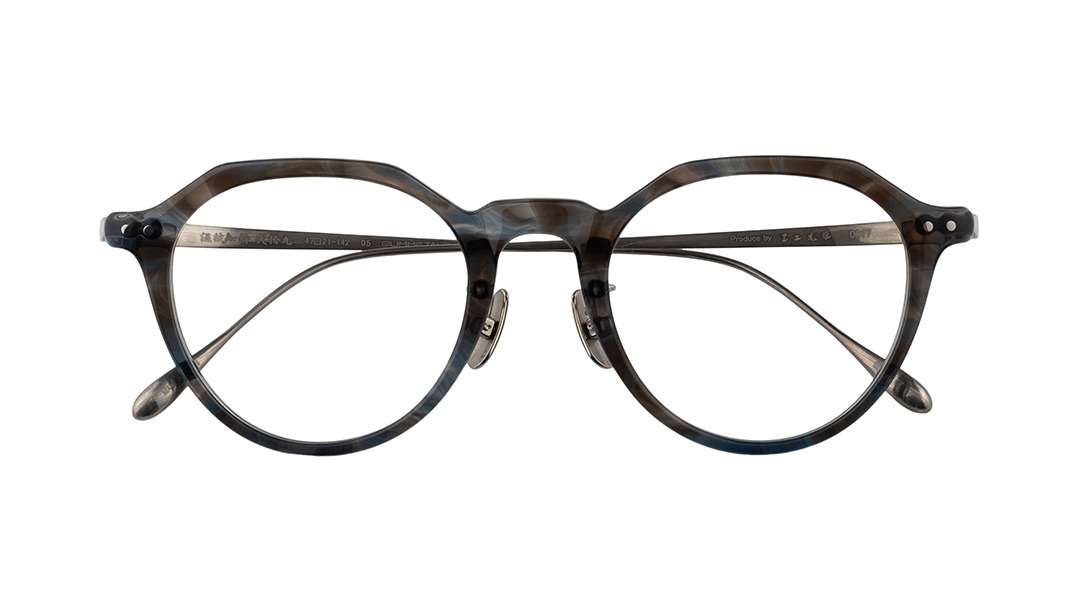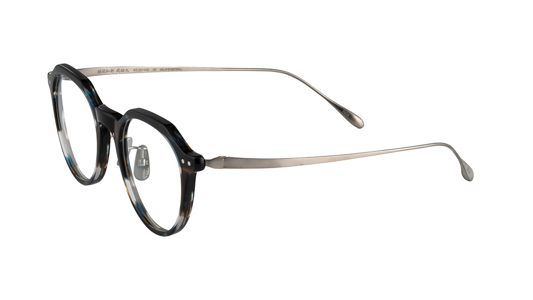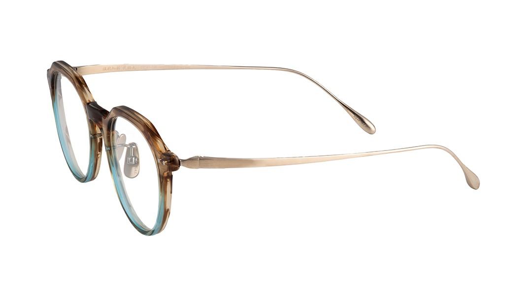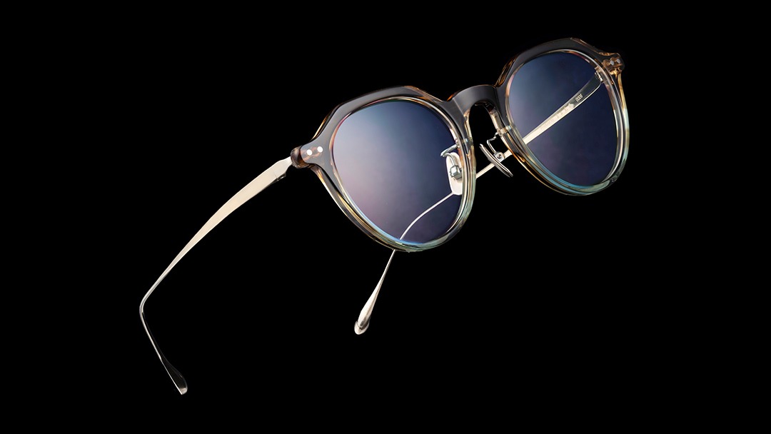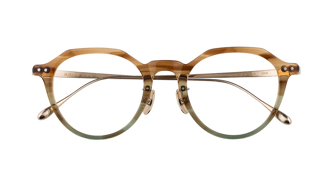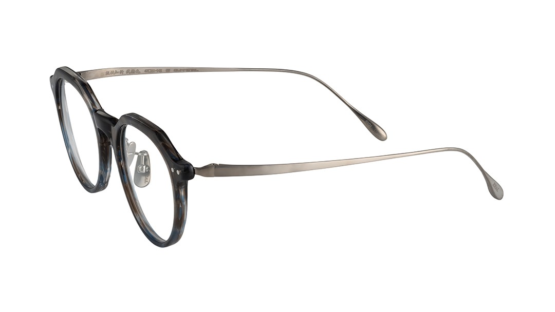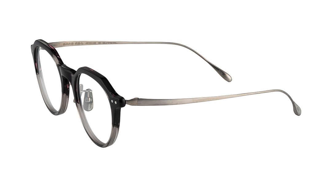 角ばったウェリントンとやや丸みの強いボストンの特徴をミックスした太目のクラウンパントと呼ばれるレンズシェイプが柔和でありながらキリッとした印象も両立する表情を生み出します。