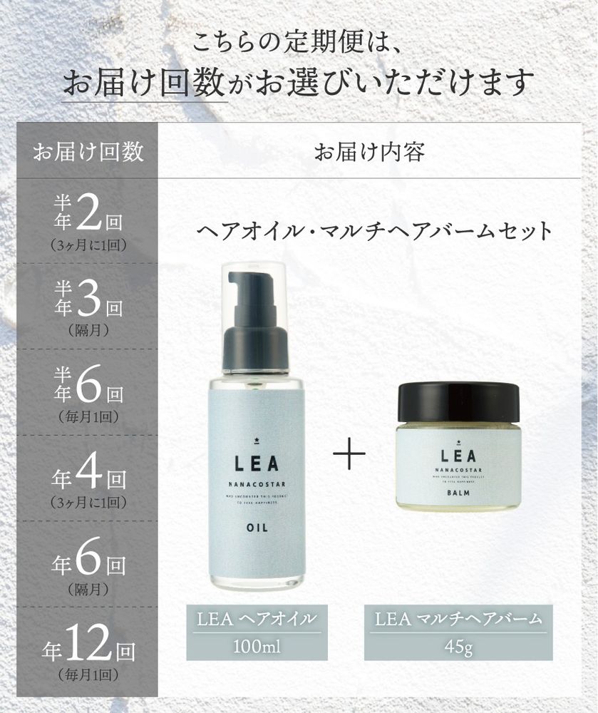 【 定期便 】 天然由来のLEAヘアオイル・LEAマルチヘアバームセット 【 半年間 or 1年間 】 選べるお届け回数 2~12回 ダメージケア セット サロン専売 ナナコスター 山梨 富士吉田