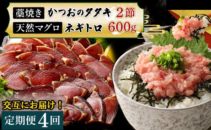【交互定期便 / 4ヶ月連続】 土佐流藁焼きかつおのたたき2節と高豊丸ネギトロ600g 魚介類 海産物 カツオ 鰹 わら焼き 高知 コロナ 緊急支援品 海鮮 冷凍 家庭用 訳あり 不揃い 規格外 連続 4回 小分け 個包装 まぐろ マグロ 鮪 交互 藁 藁焼き かつお 室戸のたたき tk056