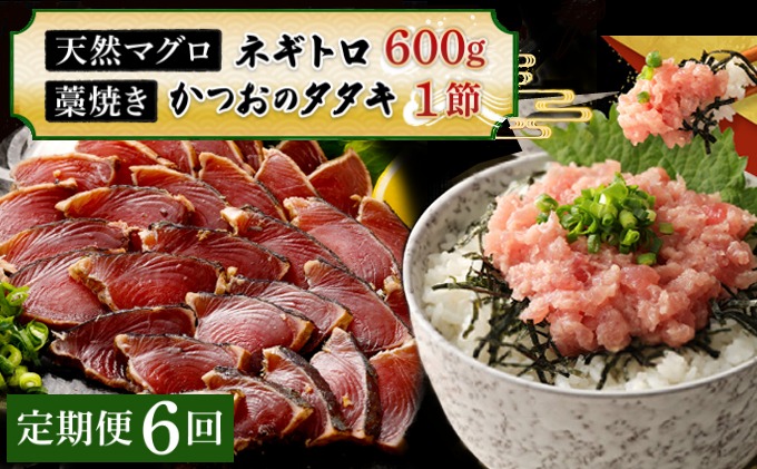 【定期便 / 6ヶ月連続】 土佐流藁焼きかつおのたたき1節と高豊丸ネギトロ600gセット 魚介類 海産物 カツオ 鰹 わら焼き 高知 コロナ 緊急支援品 海鮮 冷凍 家庭用 訳あり 不揃い 規格外 連続 6回 小分け 個包装 まぐろ マグロ 鮪 お手軽 藁 藁焼き かつお 室戸のたたき tk068