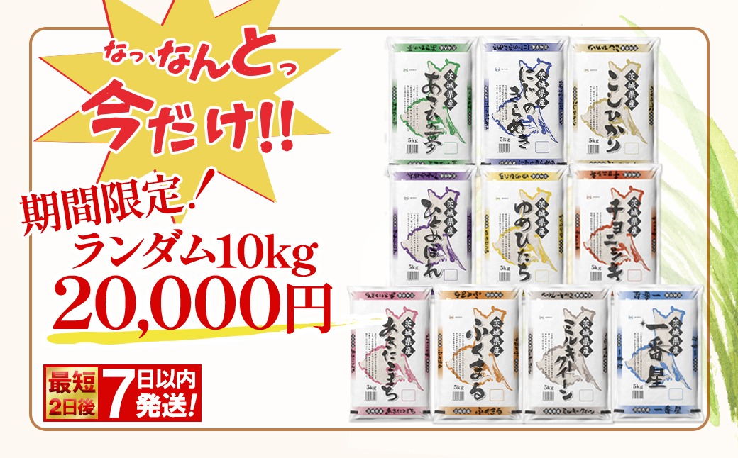 このセットでは、コシヒカリをはじめとした、厳選された10種類の品種からランダムで2品種をお届けします。