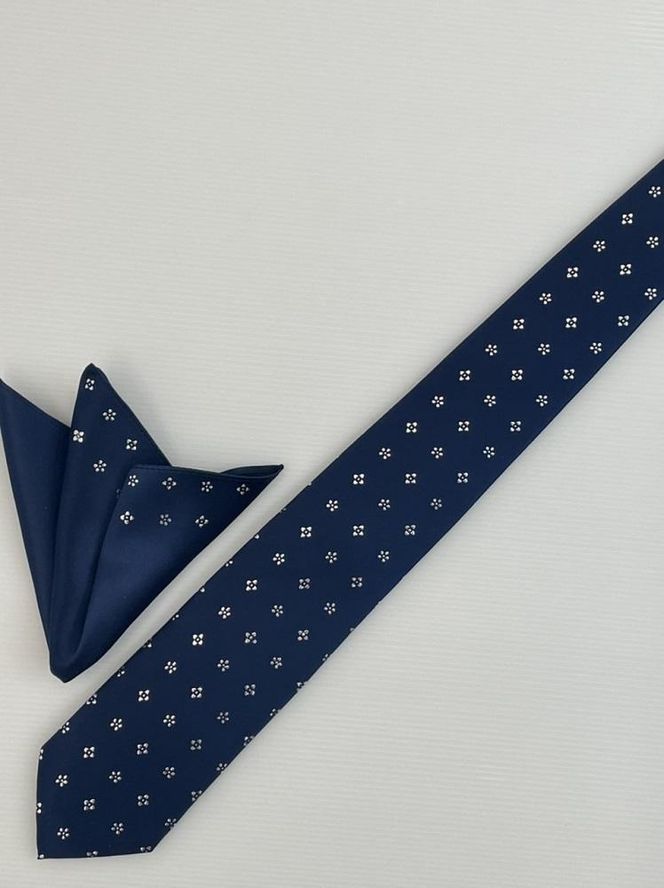 【光映工芸】京都発!特許高蒔絵技法による伝統工芸品 京金彩ネクタイ&チーフセット【花紋】(紺)[ 京都 老舗 ネクタイ チーフ 高級 人気 おすすめ 金彩友禅 京金彩 織物 カジュアル ギフト プレゼント お取り寄せ 通販 送料無料 ふるさと納税 ] 261009_A-CT037