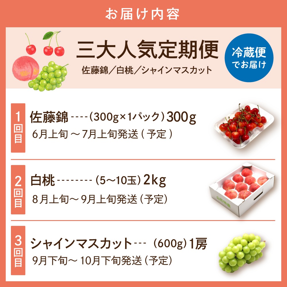 【2026年 先行予約 3回定期便】2026年 フルーツ王国 三大人気定期便 千笑花夢提供 山形県 東根市 hi082-041