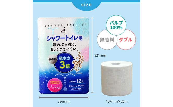 | ふんわりやさしい吸水力3倍シャワートイレ用(12ロール×6パック)ダブル 1ロール25m |