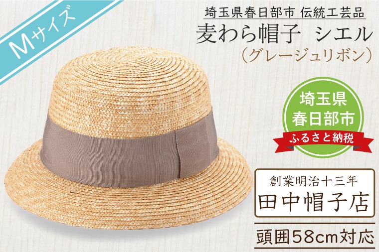 AN090 春日部市伝統工芸品 田中帽子店 麦わら帽子 シエル グレージュリボン 頭囲58cm (UK-H136-GG-M)