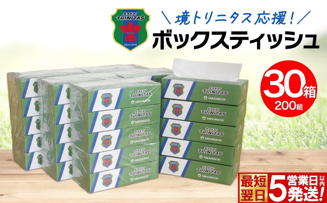 【5日以内発送】 境トリニタス応援ボックスティッシュ 400枚(200組)×30箱 日用品 防災 消耗品 必需品 花粉 風邪 ティッシュ ボックス ボックスティッシュ K2604