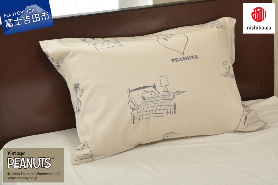 西川 PEANUTS スヌーピーピローケース ベージュ スヌーピー 枕カバー まくらカバー ピローケース 寝具 山梨 富士吉田