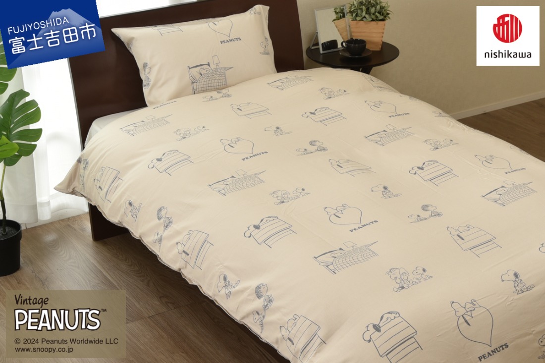 西川 PEANUTS スヌーピー掛けふとんカバー SLサイズ ベージュ スヌーピー 掛け布団カバー ふとんカバー シングルロングサイズ 寝具 山梨 富士吉田