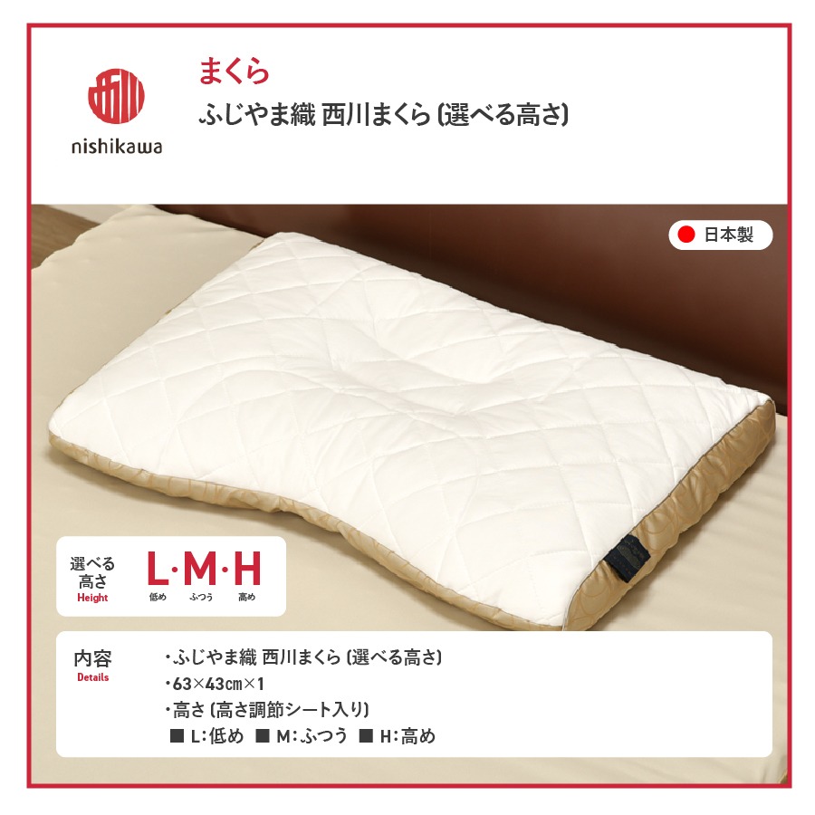 ふじやま織西川まくら 【選べる高さ 低め/ふつう/高め】 枕 ピロー ふじやま織 洗える 寝具 山梨 富士吉田