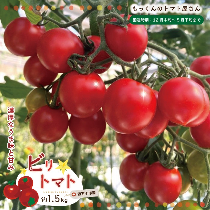 四万十市産 じっくり育った濃厚 ビリトマト 1.5kg 南国 新鮮 野菜 やさい 国産 トマト とまと ミニトマト コク 甘い 冷蔵 産地直送 お取り寄せ 旬 農家直送 高知県 高知 四万十市 四万十 しまんと 【12月中旬~5月下旬に発送】25-86