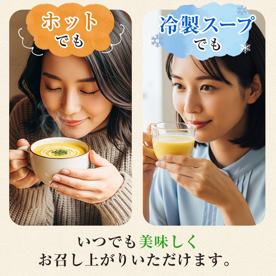 また、ホットはもちろん、冷製スープとしても美味しくお召し上がりいただけます。