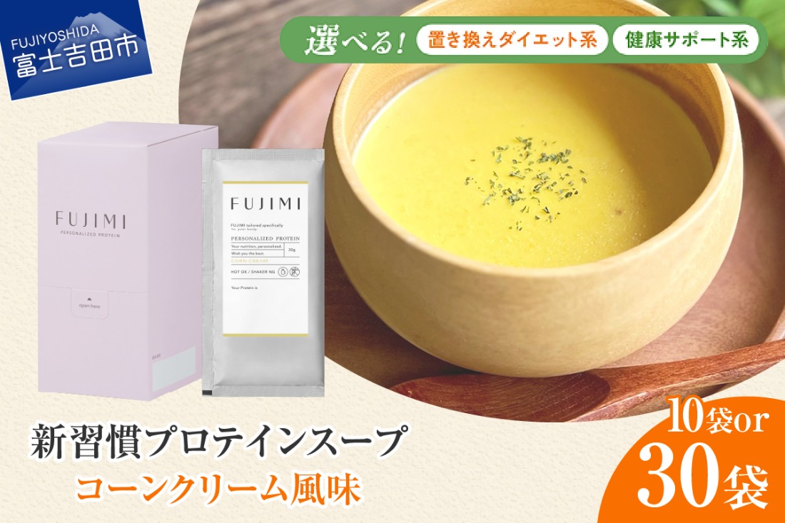 FUJIMI プロテイン コーンクリーム ダイエット系 健康サポート系 【 選べる容量 10袋 30袋 】 プロテインスープ たんぱく質 ソイプロテイン ミルクプロテイン 温活 置き換え 手軽 山梨 富士吉田