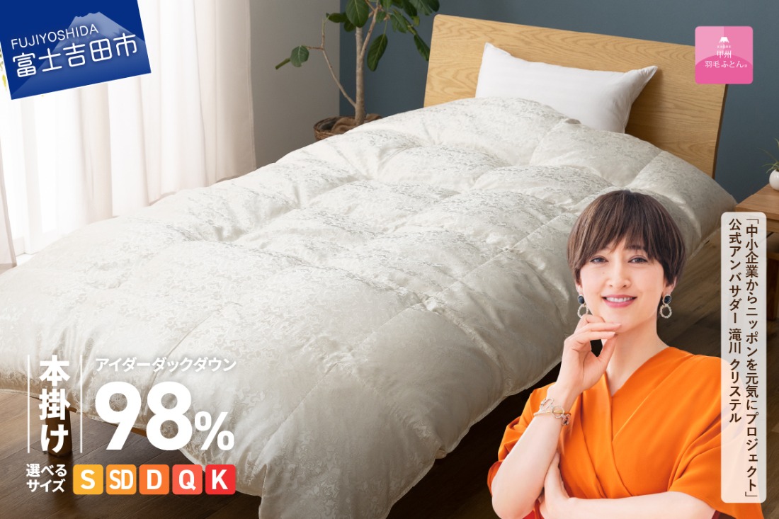 【甲州羽毛ふとん】本掛けシルクジャガード手選別アイダーダウン【選べるサイズ】シングル/セミダブル/ダブル/クイーン/キング 羽毛ふとん 掛け布団 シルクジャガード 本掛け 布団 アイダーダウン 回収キット付き 山梨 富士吉田
