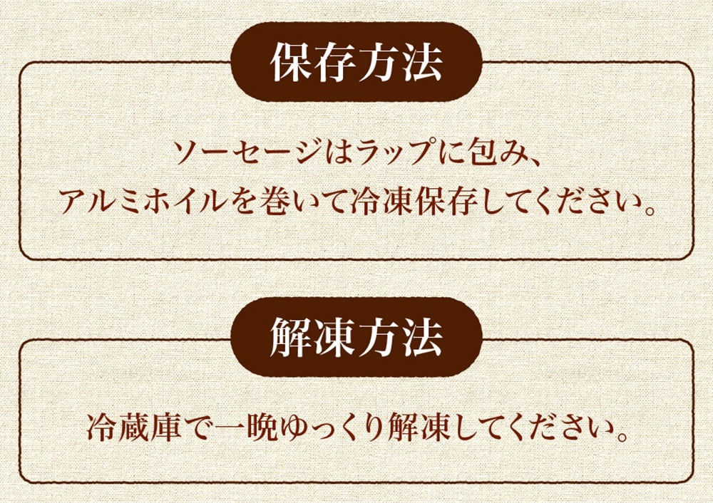 ソーセージ類は、ラップに包み、アルミホイルを巻いて冷凍保存してください。