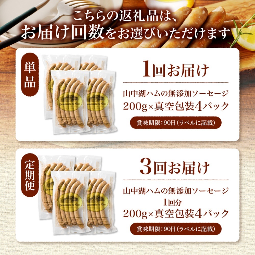 【山中湖ハム】豚肉と塩、ハーブ香辛料だけで作った無添加ソーセージ 800g 【選べるお届け回数】 単品 1回 定期便 3回 ソーセージ 豚肉 塩 ハーブ 香辛料 無添加 山中湖ハム 山梨 富士吉田