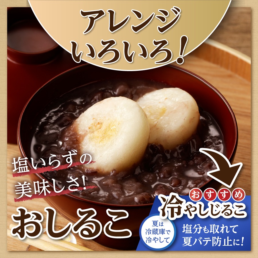 おしるこを作る時にはお好きな量のお水で溶いて火にかけていただき、塩いらずの美味しさです。