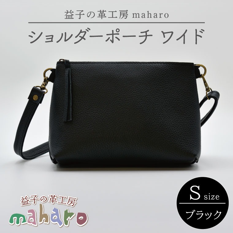 益子の革工房maharoのショルダーポーチ ワイド(S)ブラック|栃木県 益子町 ふるさと納税 ショルダーポーチ ワイド 牛革 手作り(AX135)