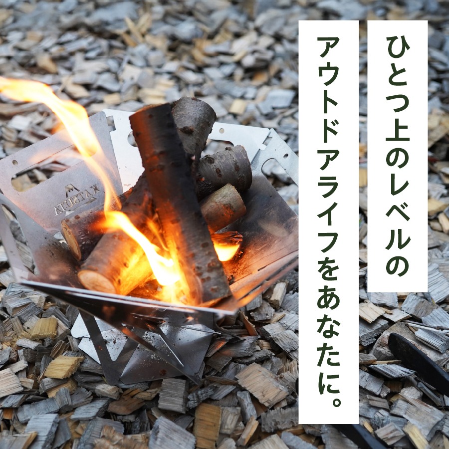 シンプルな六角形のフォルムが炎を美しく立ち上げ、ソロキャンプやアウトドアに特別な時間を演出します。