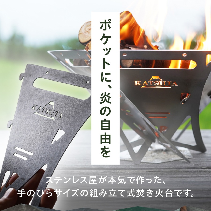 「六角」は、ステンレス屋が本気で作った、手のひらサイズの組み立て式焚き火台です。