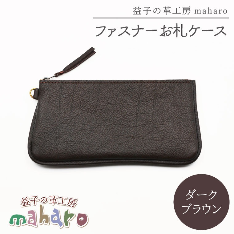 益子の革工房maharoのファスナーお札ケース ダークブラウン|栃木県 益子町 ふるさと納税 ファスナーお札ケース 牛革 手作り(AX138-2)