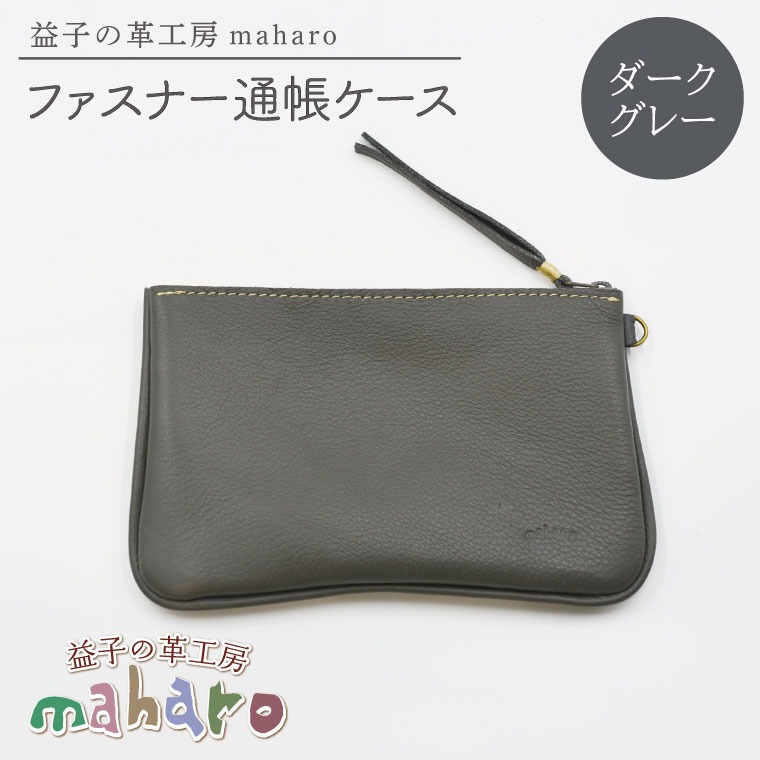 益子の革工房maharoのファスナー通帳ケース ダークグレー|栃木県 益子町 ふるさと納税 ファスナー通帳ケース 牛革 手作り(AX139-5)
