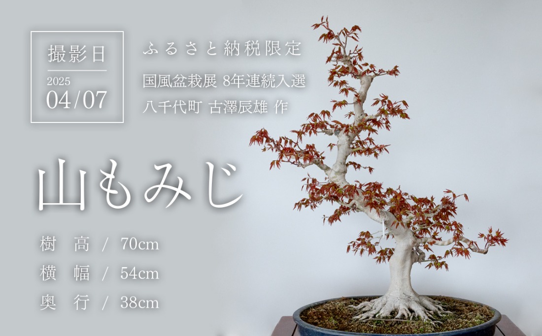 八千代町在住の盆栽作家:古澤辰雄氏が、丹精込めて育てた1点物です。