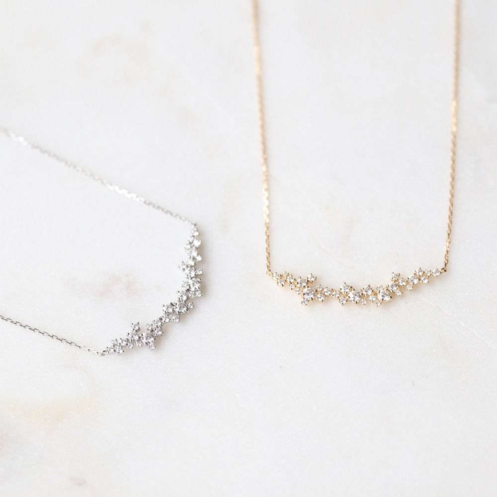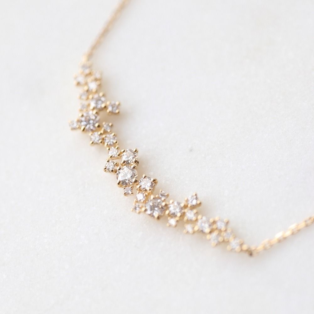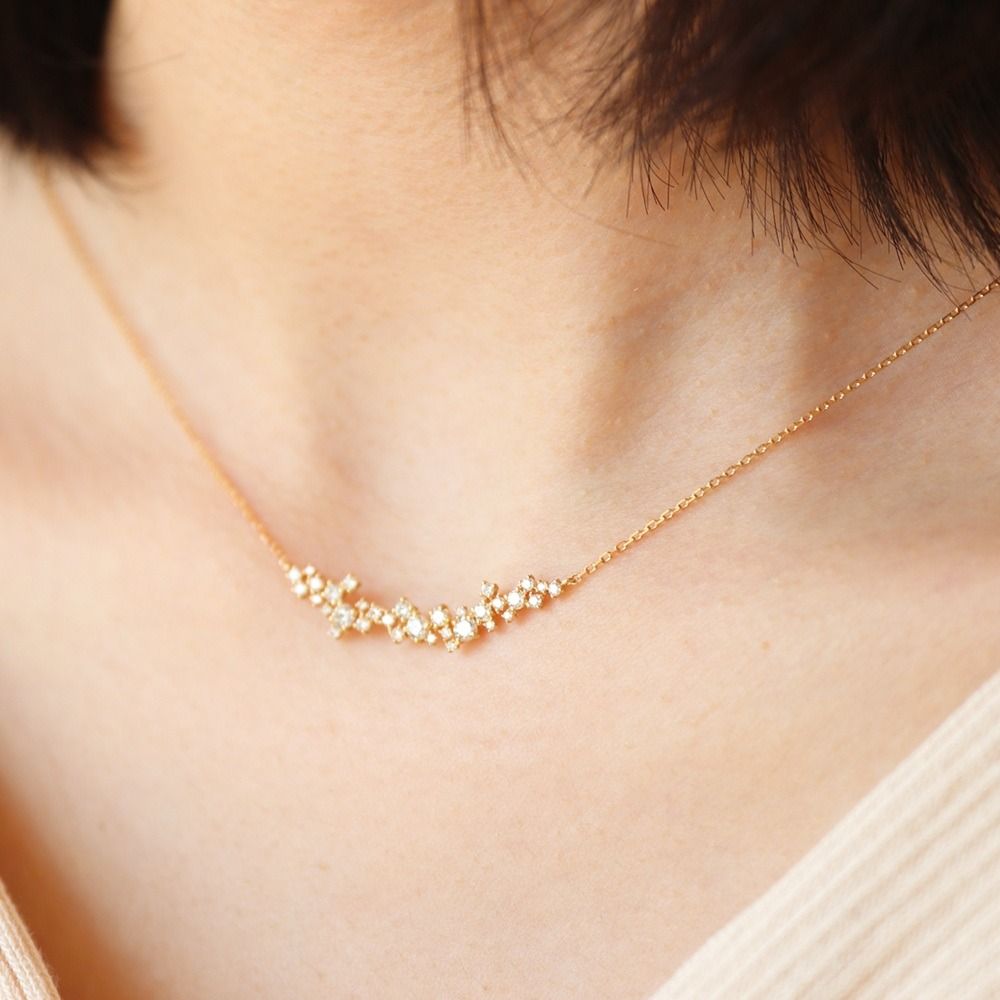 33石のダイヤモンドのグラデーションが美しい、天の川を連想するような煌びやかな表情のネックレスです。